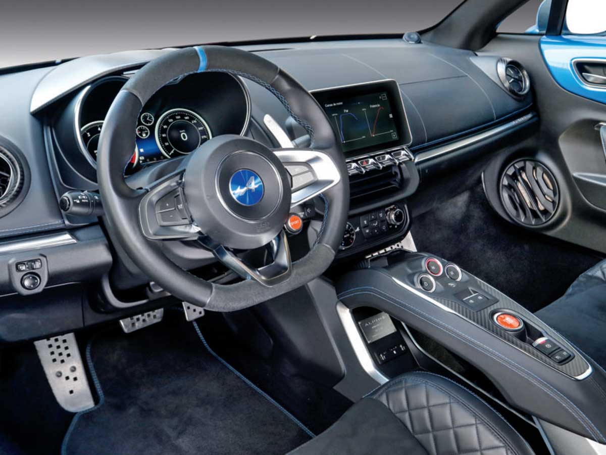 Dentro, la amplitud es justa aunque sin grandes agobios. Los dos arropan al conductor desde una posición de asiento baja; el Cayman, con un volante más recto, en contraposición a la inclinación más marcada de la que da cuenta el Alpine. En este, sorprende la ausencia de una palanca de cambio, ya que la dirección de marcha se engrana con botones para después encomendar el cambio a las levas, o bien dejarlo en modo totalmente automático.