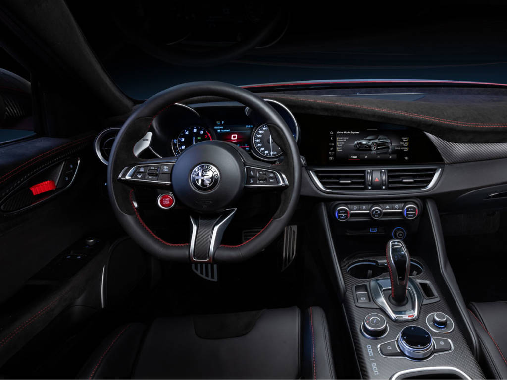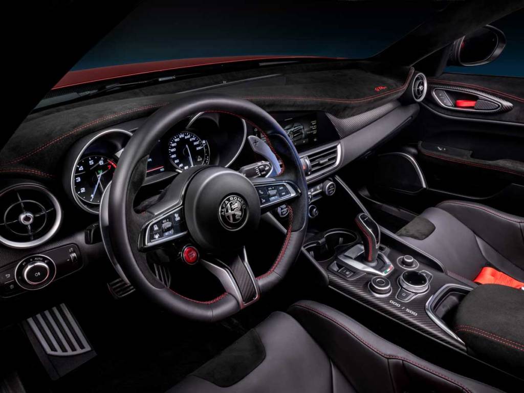 Se beneficia también de ejes ensanchados en 50 mm que cubren unas llantas monotuerca de 20 pulgadas. Todos elementos inspirados directamente en la Categoría Reina: la Fórmula 1. El resultado es un coche todavía más llamativo que, aunque basado en el excelente Quadrifoglio, pone sobre aviso a cualquier interesado que este GTA no es un simple deportivo más.
