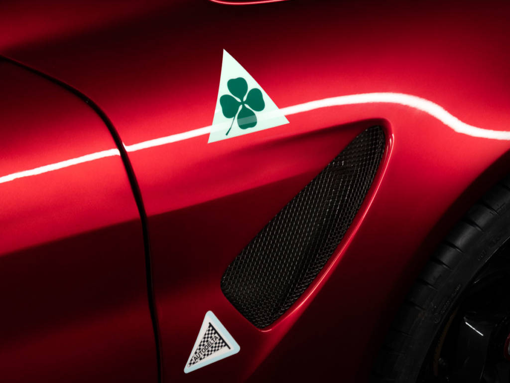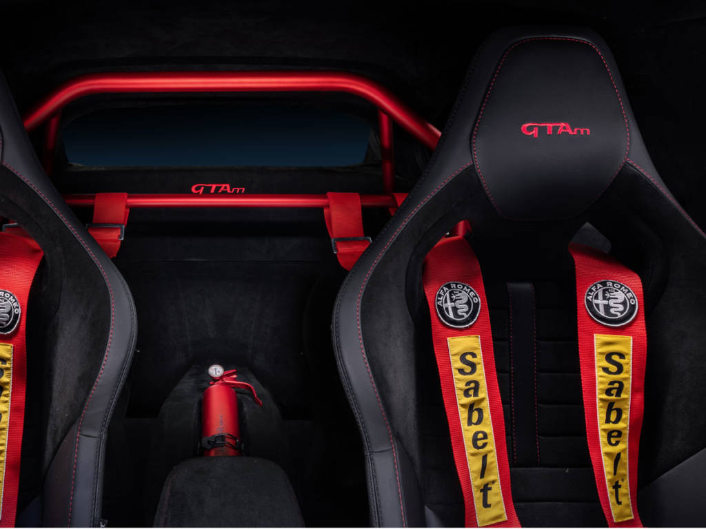 Se elimina la banqueta trasera, dejando un huevo totalmente tapizado con molduras previstas para transportar una pareja de cascos. Toques inspirados en las carreras que completa con barras antivuelco, paneles de las puertas simplificados e incluso tiradores de las puertas de cinta para ahorrar hasta el último gramo. Concretamente Alfa Romeo consigue reducir hasta en 100 kg el peso del conjunto. ¿Lo mejor de todo? Está homologado para calle.