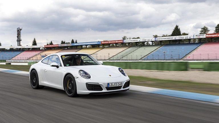 No menos sorprendente resulta la nueva configuración del paquete Sport Chrono, que adopta un selector giratorio, ubicado en uno de los brazos del volante multifunción, de diseño similar al empleado por el 918 Spyder. Gracias a este mando, el conductor puede seleccionar cualquiera de los cuatro modos de conducción predeterminados: “Normal”, “Sport”, “Sport Plus” e “Individual”. Aquellos que opten por la caja PDK, disfrutarán de un quinto programa, denominado “Sport Response Button”, configurado para entregar la aceleración máxima disponible durante 20 segundos. En cualquier caso, cada una de estas modalidades de conducción modifica el funcionamiento de la suspensión, los tacos dinámicos del motor, la gestión de la transmisión PDK y el sonido del sistema de escape. Unas cualidades esenciales para rodar rápido, tal y como tuvimos ocasión de comprobar, como copilotos de los instructores de la marca, durante varias vueltas al mencionado trazado de Hockenheim. En cada uno de los giros, pudimos comprobar el dinamismo del vehículo en los distintos modos de conducción, así como la solvencia del sistema de tracción integral “PTM” (Porsche Traction Management).