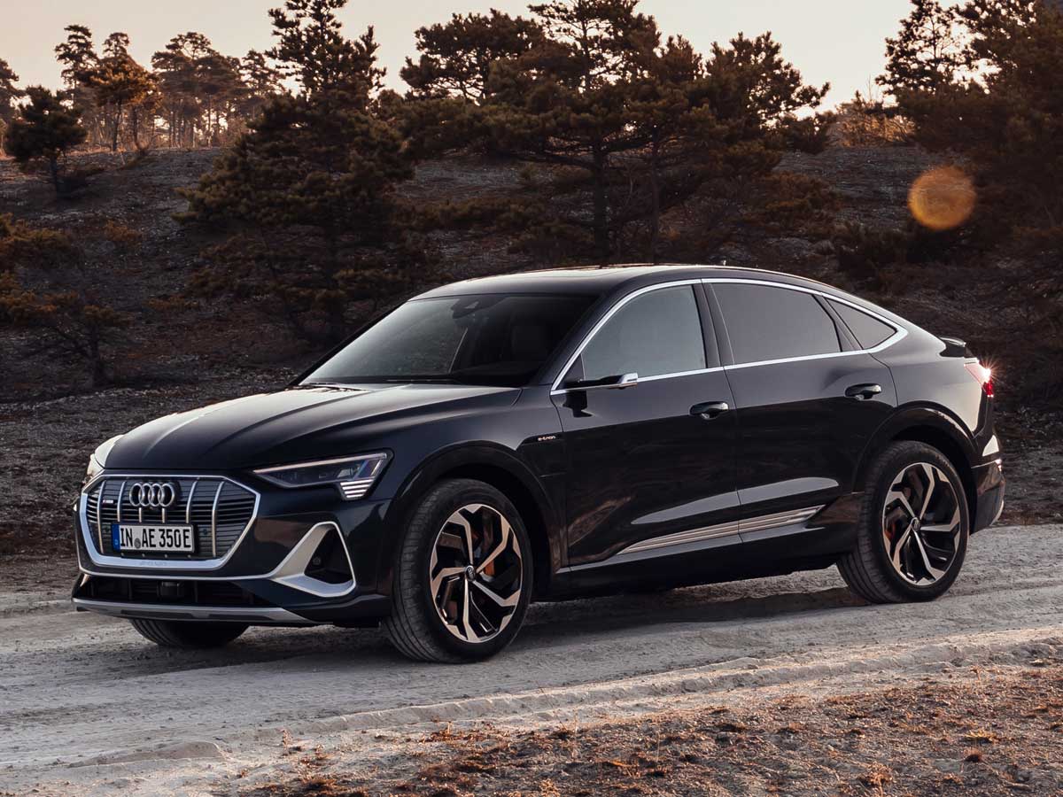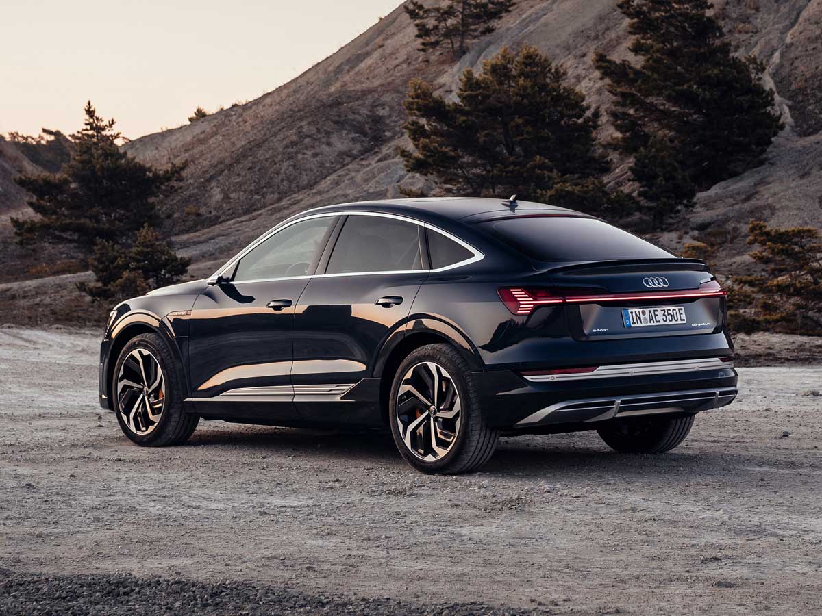 Mide 4,901 metros de largo, 1,935 de ancho y 1,616 de alto. Exhibe una parrilla frontal octogonal, más tradicional que la maciza del Sportback Concept que se dejó ver en el Salón de Shanghai de 2017. Además, monta de serie los eficaces faros delanteros Matrix-Led. Se asienta además sobre la misma estructura del e-tron estándar, utilizando la plataforma MLB del Grupo Volkswagen adaptada, con llantas de 19 pulgadas (22 opcionalmente).