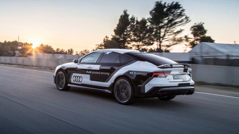 Audi ha completado con éxito varias pruebas de conducción autónoma desde 2010. Ese año, un TTS subió a la mítica montaña Pikes Peak, en Colorado, Estados Unidos. En 2012, ese mismo coche rodó en el circuito californiano de Thunderhill Raceway. En 2015, el A7 Sportback piloted driving concept viajó por vías públicas desde Silicon Valley a Las Vegas. Antes, en 2014, la primera generación del RS 7 piloted driving concept dio una vuelta al circuito de Hockenheim a una velocidad punta de 240 km/h. La segunda entrega del coche, empleada en la broma a los jugadores del Barça, rodó en mejores tiempos que los pilotos en el circuito Sonoma Raceway, en California, Estados Unidos.