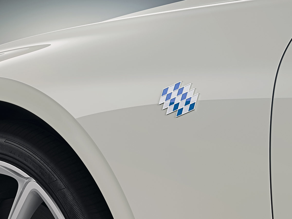 Sobre las aletas se sitúa una logotipo con el patrón de la bandera de Bavaria con detalles esmaltados. Sus llantas son específicas con un diámetro de 22 pulgadas y la parrilla inferior delantera se ha cromado.