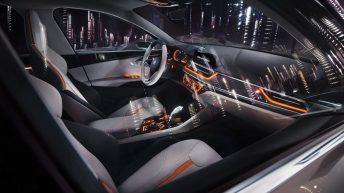 En el habitáculo, la consola central está posicionada hacia el condutor. Las funciones en el volante, la consola central y la apertura de puertas funcionan utilizando superficies táctiles. Un “Head-up Display” y una pantalla central de 8,8 pulgadas muestran toda la información solicitada en el momento. Los materiales empleados en el salpicadero: piel “Nappa”, madera y aluminio cepillado, son propios de las berlinas de lujo. La iluminación anaranjada proporciona un carácter deportivo. Según BMW, el espacio y la amplitud son poco comunes para un coche de esta clase. Detrás, hay dos asientos individuales con marcadas sujeciones laterales. Por su parte, el gran techo panorámico inunda el interior con luz natural para acentuar la sensación de holgura.