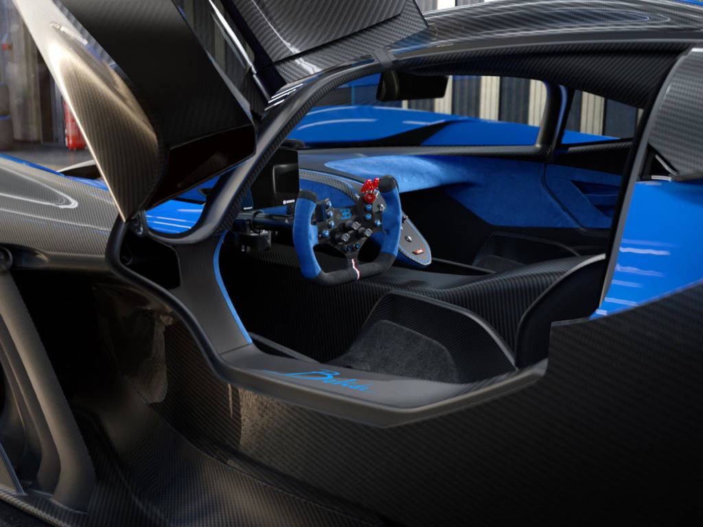 Pero todo esto no lo consigue por casualidad el Bugatti Bolide. Tiene un peso en báscula de 1.240 lo que le deja en una relación peso potencia de 0,67 kg/CV, algo que consigue gracias a la impresión en 3D de muchos de sus componentes, lo que ahorra tornillería y remaches; mientras que muchos de sus componentes están construidos en titanio y magnesio. Las llantas, por ejemplo, tienen un peso de solo 7,4 kg las delanteras (340 mm de ancho de rodadura) y 8,4 las traseras (400 mm de ancho de rodadura). Además, también se ha rebajado el espesor de algunos de sus componentes a solo 0,5 mm.