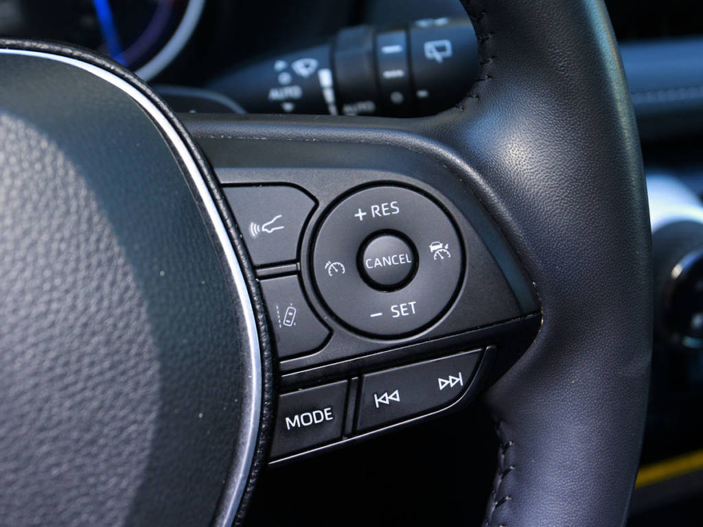 De serie: Toyota Safety Sense, con asistente precolisión, frenada de emergencia y reconocimiento de peatones y ciclistas, control de crucero adaptativo, control de crucero inteligente, reconocimiento de señales, luces de carretera inteligentes, aviso de cambio de carril involuntario con mantenimiento de la trayectoria; llamada de emergencia eCall; faros LED; cámara de visión trasera; asistente de arranque en pendiente; control de la presión del aire en los neumáticos; sensores de aparcamiento delanteros y traseros; sensores de luces y lluvia; portón eléctrico; tapicería de cuero; retrovisor interior electrocromático; acceso y arranque manos libres; freno de estacionamiento eléctrico; climatizador bizona; asiento del conductor con reglaje eléctrico; asientos delanteros calefactados; Toyota Touch 2 con pantalla táctil multifunción de 8’’; cargador inalámbrico para el móvil; cuadro de mandos TFT de 7’’; información del vehículo a través de la App MyT; llantas de aleación de 18’’; cristales traseros oscurecidos y barras en el techo.