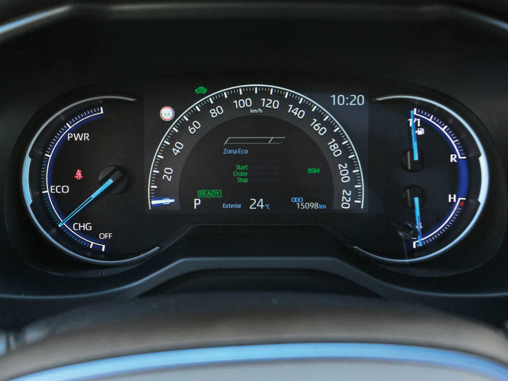 Por último, el sistema eléctrico se alimenta desde sendas baterías, de iones de litio en el CR-V y de níquel e hidruro metálico en el RAV4. La última tiene más capacidad, aunque será complicado alcanzar dos kilómetros de marcha eléctrica. Uno y otro presentan un mando EV para forzar esa conducción si hay carga en unas baterías que recuperan por efecto de la frenada regenerativa (en el Honda las levas del volante permiten gestionarla entre cuatro niveles de intensidad).