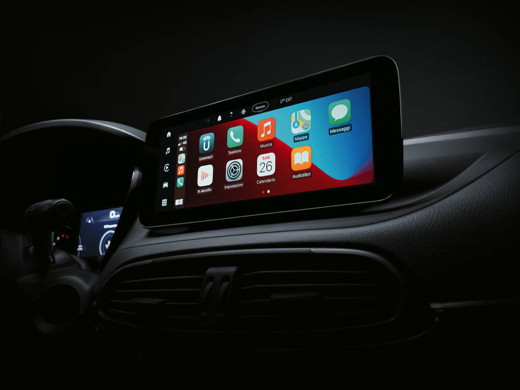 Uno de los motivos de esta pérdida de tamaño está en la nueva instrumentación digital, de 7 pulgadas, que ahora se verá mejor. Además, al centro del salpicadero llega la última evolución del sistema de infoentretenimiento Uconnect 5, estrenado en el Fiat 500, y que cuenta con un tamaño de 10,25 pulgadas.