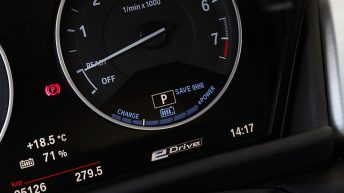Circulando por las congestionadas calles de Madrid, más que este magnífico registro, hay que destacar lo bien que funciona esta combinación de mecánicas. De forma predeterminada, el coche arranca en “AUTO eDRIVE” y circula únicamente en eléctrico hasta que no pisemos con fuerza sobre el pedal del acelerador para hacer un “kick-down”, momento en el que arranca la unidad térmica. En el siguiente modo, denominado “MAX eDRIVE”, solo trabaja el eléctrico, y no te preocupes por si vas a ser un vehículo lento, porque puede llegar hasta 125 km/h. El tercer programa es el “SAVE BATTERY” y como su propio nombre indica, preserva la energía disponible en la batería para una posterior utilización en ciudad; además, el motor de combustión también se ocupa de recargar dicha batería cuando esta se encuentre por debajo del 50 por ciento de su capacidad.