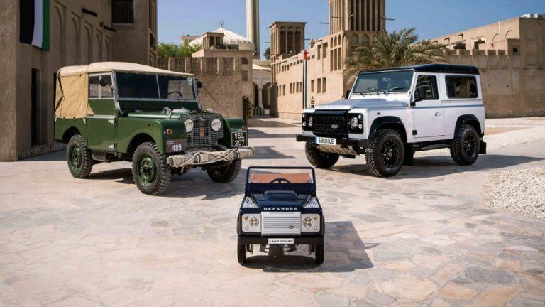 El todoterreno británico, fabricado en Solihull, Reino Unido, está expuesto en el distrito Al Fahidi, en el centro de la ciudad. Junto a él, se encuentran un Land Rover Serie I para reflejar la evolución del coche a lo largo de varias décadas, y el prototipo del Defender a escala que funciona a pedales, construido artesanalmente y que también podría convertirse en un popular artículo de coleccionista.