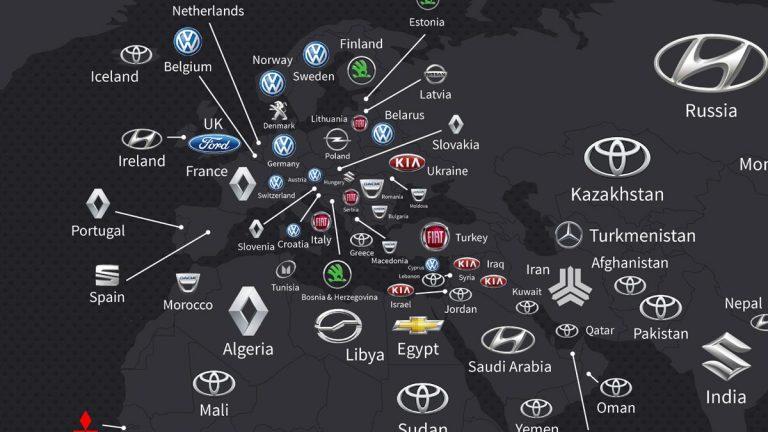 A través de datos de varias fuentes, la firma de Reino Unido ha logrado los datos y los ha plasmado en un mapa de todo el mundo en el que podemos ver la marca más vendida de un gran número de estados de todo el globo, aunque hay algunos países que, por espacio, no aparecen en el mapa.