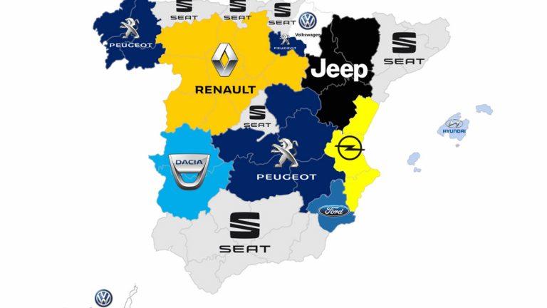 Seguro que ya habrás adivinado muchas de ellas antes de mirar este mapa. SEAT domina en la mayoría, no en vano lidera los últimos rankings de ventas: Cataluña (donde se encuentra su sede y principal factoría), Madrid, Andalucía o el País Vasco. Peugeot es otra marca que repite en varias comunidades autónomas, en concreto tres: Castilla-La Mancha, Galicia y La Rioja.