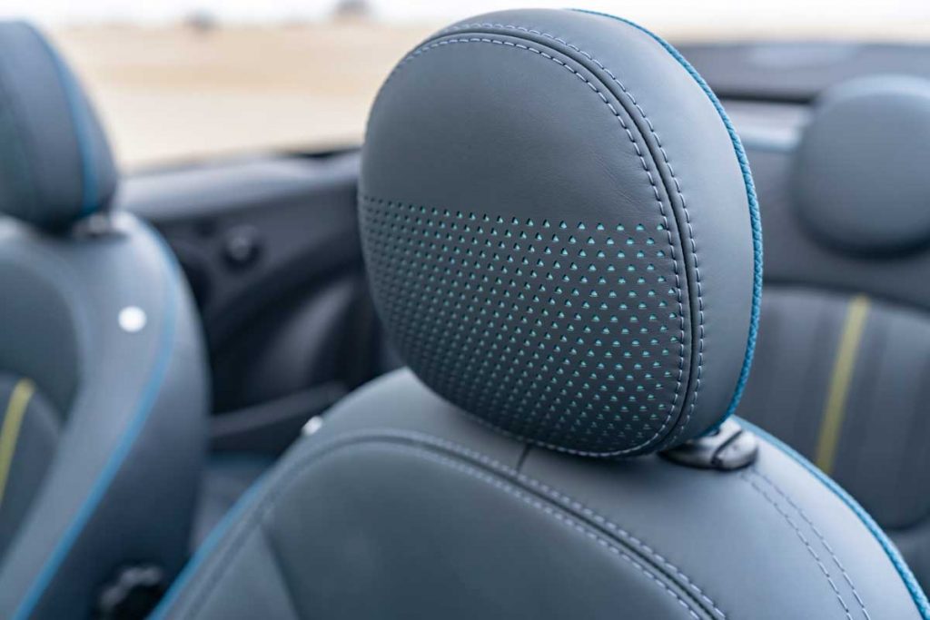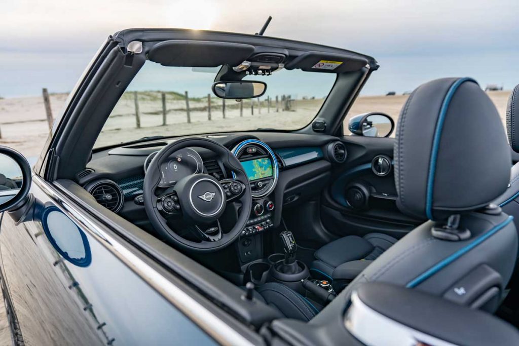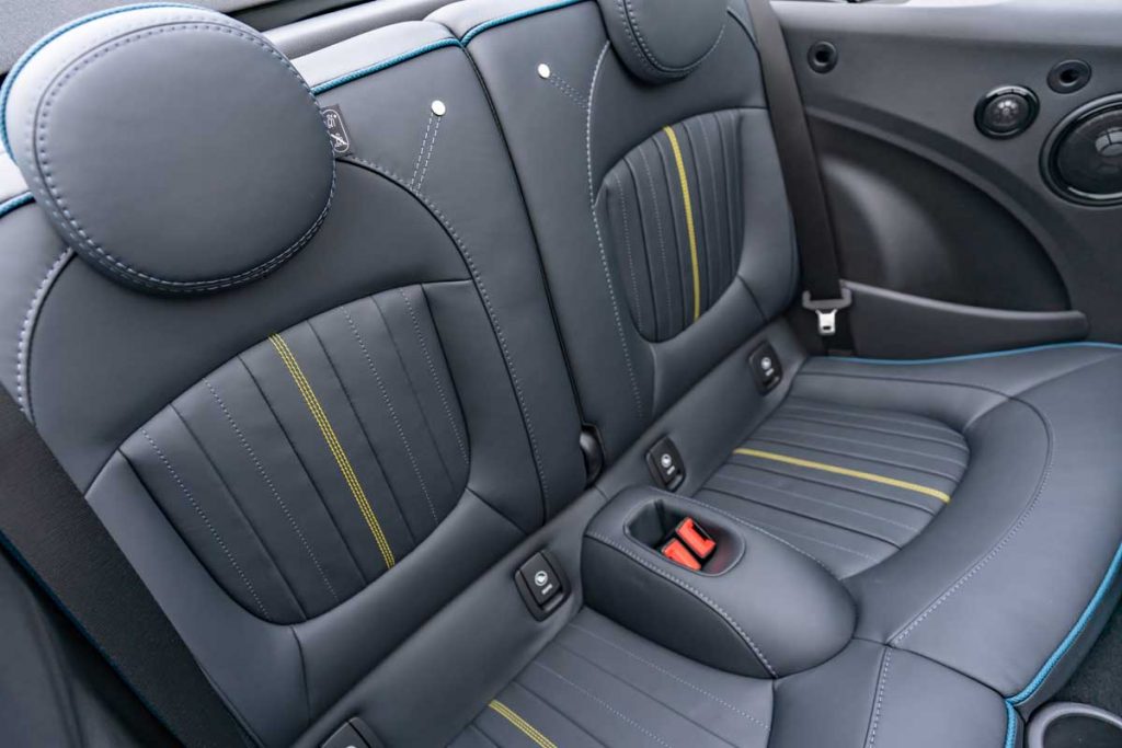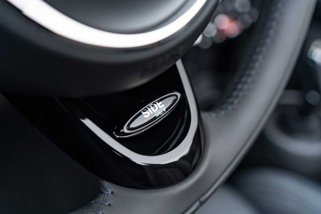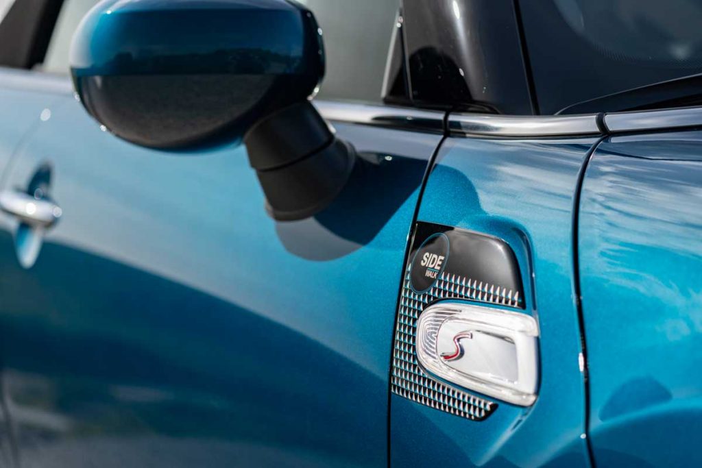 En su interior de cuatro plazas, este nuevo MINI descapotable se descubre con una tapicería exclusiva de cuero MINI Yours. Está bordada con el logotipo del modelo Sidewalk y combina con molduras decorativas retroiluminadas en el lado del acompañante. El volante deportivo también es de cuero, con un discreto logotipo Sidewalk en la parte inferior y costuras de contraste.