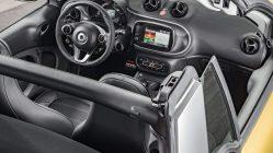 Como en las anteriores generaciones del urbano más famoso del mundo, habrá una carrocería descapotable, cuyos precios comienzan en 15.500 €. El nuevo smart fortwo cabrio tiene un techo de lona que se recoge o despliega con un botón en 12 segundos a cualquier velocidad. Esta cubierta, disponible en colores azul, rojo o negro, puede asemejarse a un techo panorámico, dejando al aire libre los asientos, o plegarse por completo, incluida la luneta trasera. Además, los arcos laterales se desmontan de forma manual y se guardan en un sitio específico del maletero.