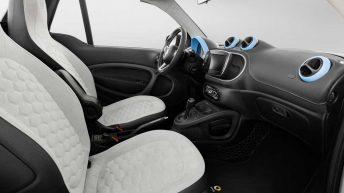 En Ginebra también se exhibió la edición especial “BRABUS edition” del smart fortwo cabrio. Está limitada a doscientas unidades y solo se comercializará con el propulsor turbo de 90 CV y la transmisión automatizada de doble embrague “twinamic”. El color exterior es el “matt light blue”, que se extiende por toda la carrocería. A partir del equipamiento “passion”, añade asientos calefactables, varios paquetes de equipamiento extra y un depósito de combustible más grande de 35 litros. A la espera de una versión “BRABUS” con más potencia, estas dos novedades son un magnífico preámbulo de lo que que llegará.