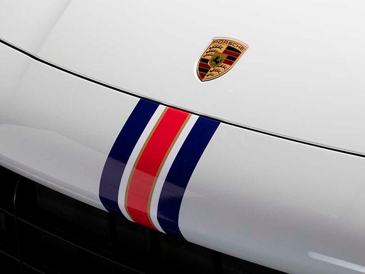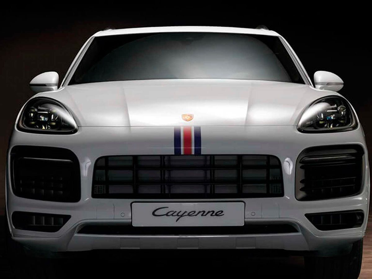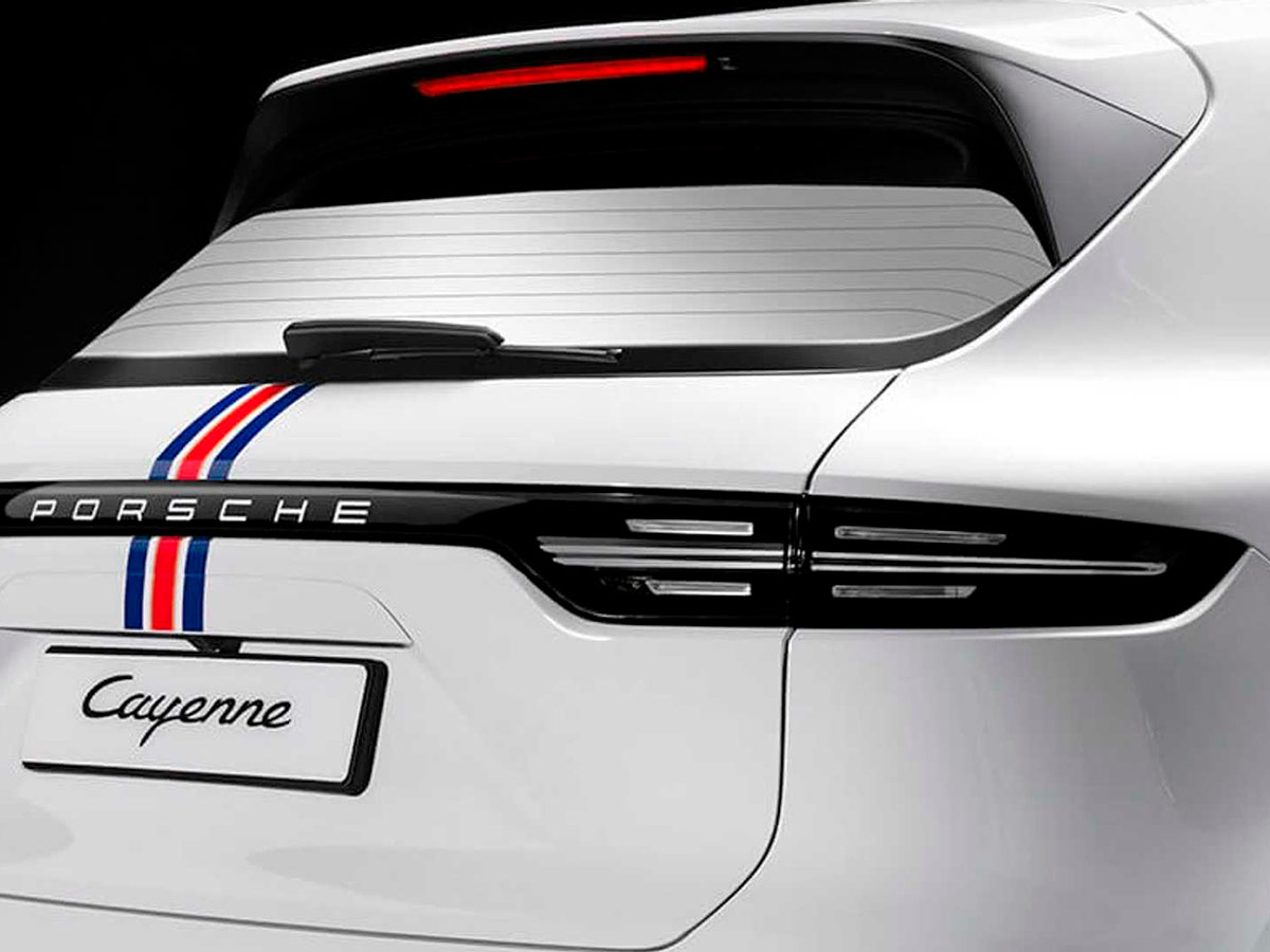 Exteriormente se puede distinguir por la incorporación de las franjas rojas y azules longitudinales, unidas al paquete aerodinámico Sportdesign y a las llantas Cayenne Exclusive Design de 21 pulgadas. Todas las carrocerías serán blancas homenajeando los colores de aquel vehículo vencedor del Dakar de 1984.