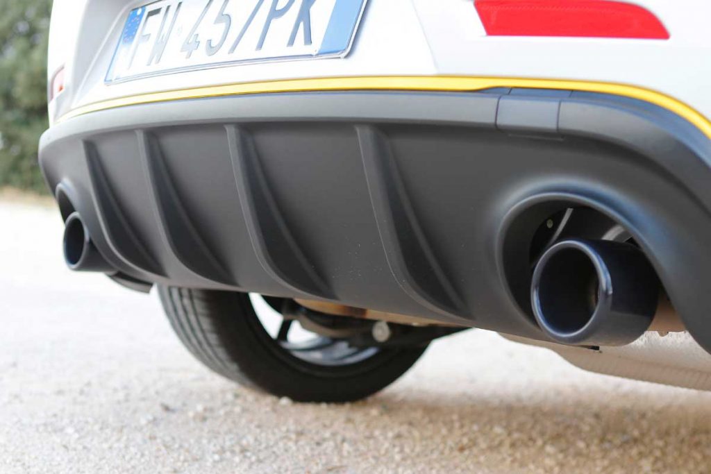 El amarillo, principal seña de identidad de este recién remozado modelo, se aplica bajo la parrilla, en las sobredimensionadas pinzas de freno (‘made in’ Brembo) y en el deportivo difusor trasero, además de en costuras de asientos, volante, freno de mano y palanca de cambios.