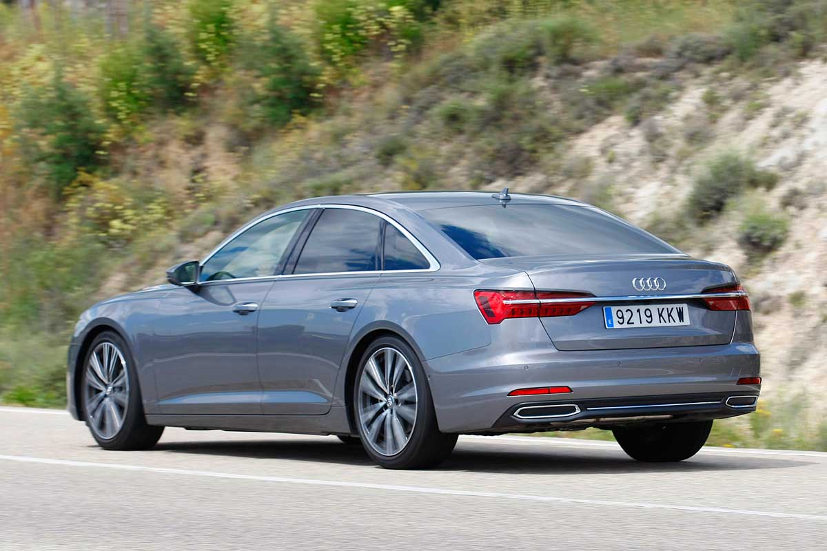 Esta versión conecta indefectiblemente tracción total quattro, garante de mucho agarre y buena aliada del abultado par dispuesto (620 Nm). También puede incorporar la cada vez más de moda dirección dinámica eléctrica trasera (2.320 €), que ayuda a cambiar de carril con más progresividad y virtualmente aminora el radio de giro maniobrando, muy de agradecer dadas las dimensiones del A6.