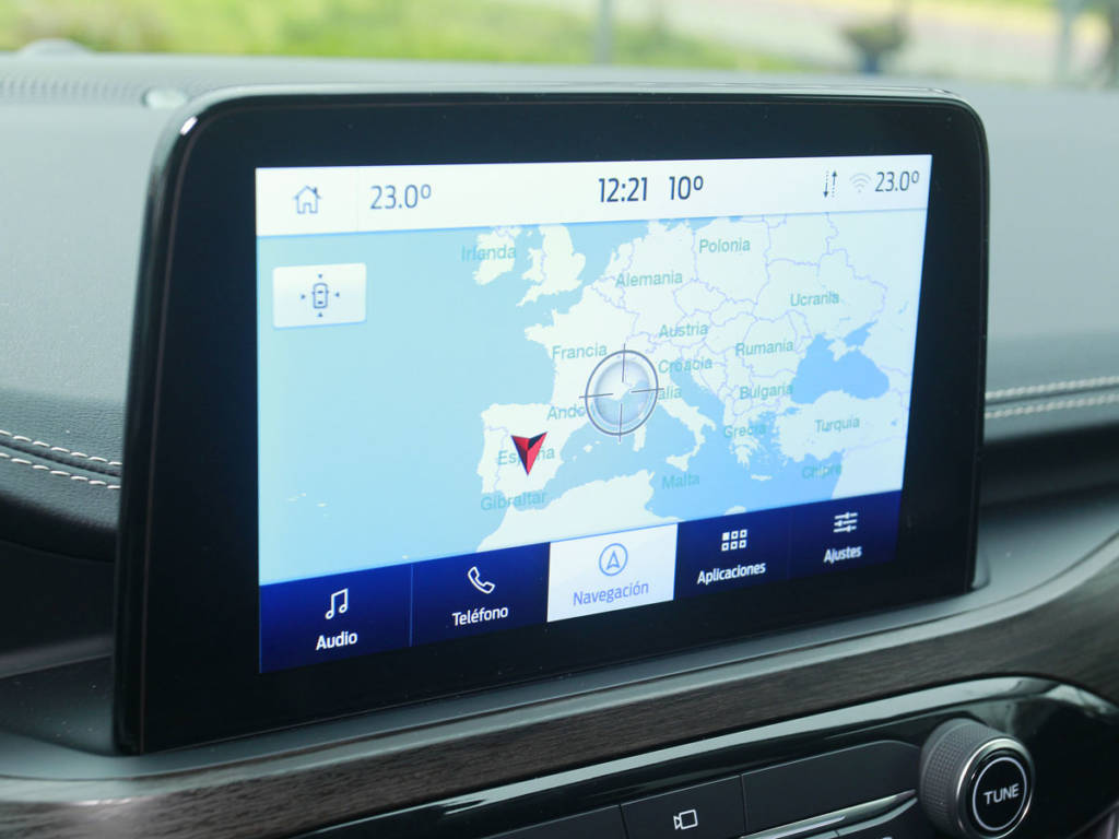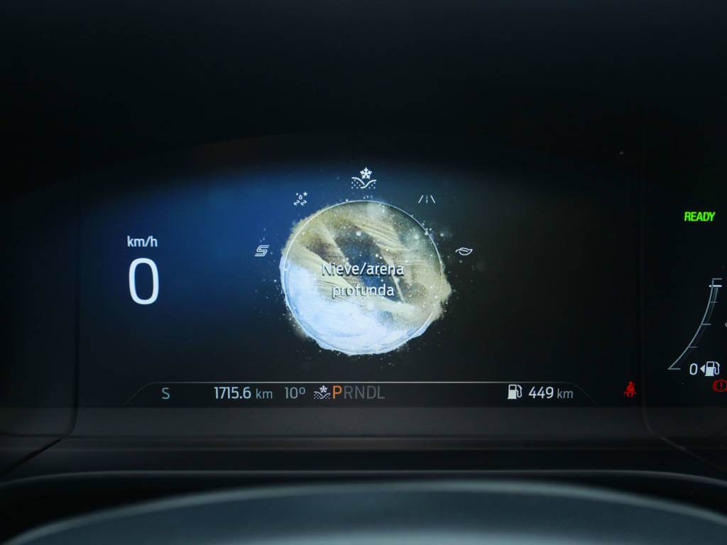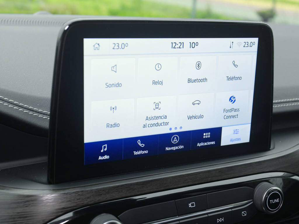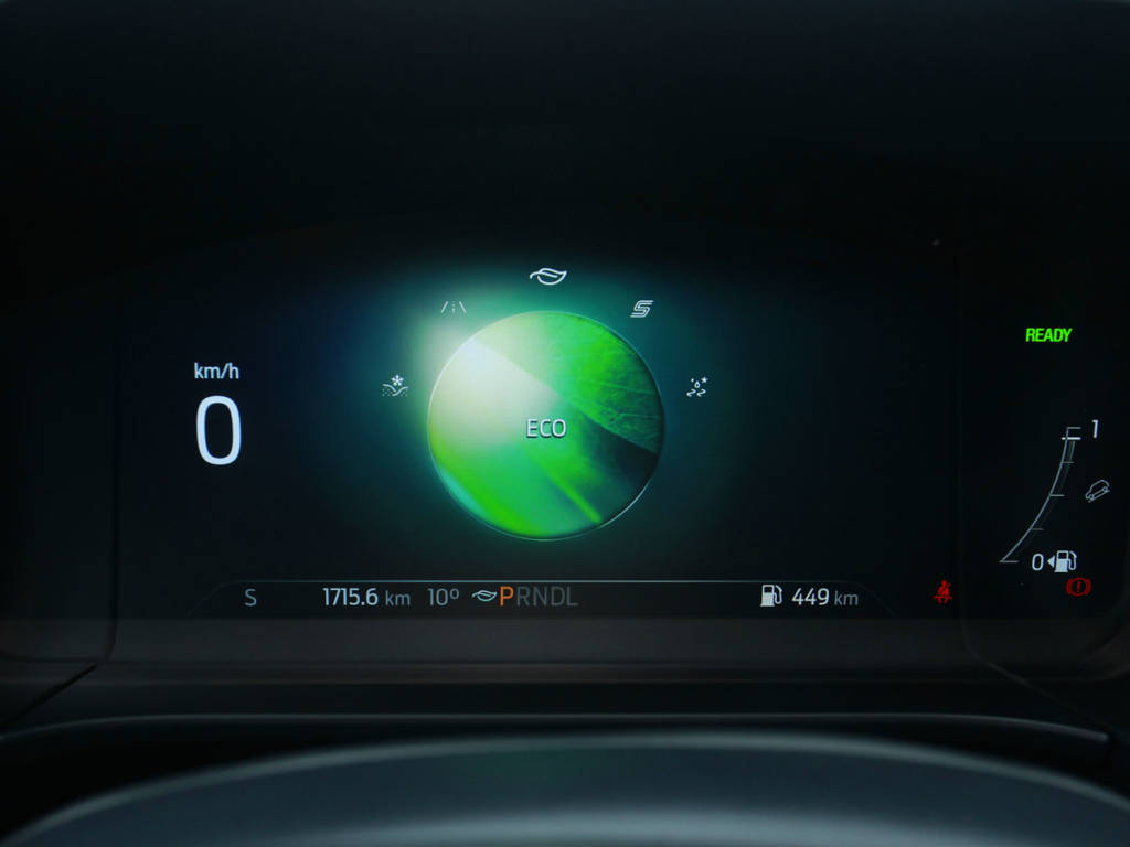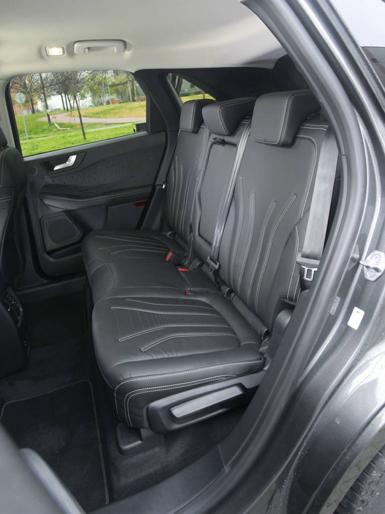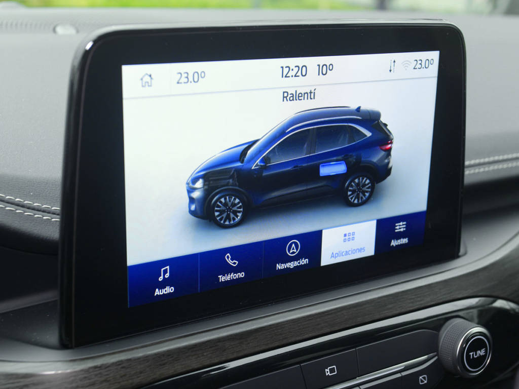 Y es que el Kuga se adapta a lo que le pidas, aunque en híbrido se mueve más a gusto por la urbe. Ahí el cambio CVT es una gozada porque simula engranajes, limitando el efecto patinamiento de estas transmisiones. Eso sí, no podemos hacerlo de manera manual/secuencial, lo hace el sistema por sí mismo. Nuestra unidad es de tracción delantera (lo hay 4×4) y podemos modular ligeramente su personalidad con los perfiles ECO, Normal, Deportivo, Resbaladizo y Nieve-Arena. El rendimiento híbrido es agradable y suficiente si tenemos prisa, aunque las prestaciones no sorprenden. Sí lo hace la dinámica: con suspensiones firmes pero confortables, dirección rápida y balanceos limitados, el Kuga Hybrid es de los mejores de su tipo.