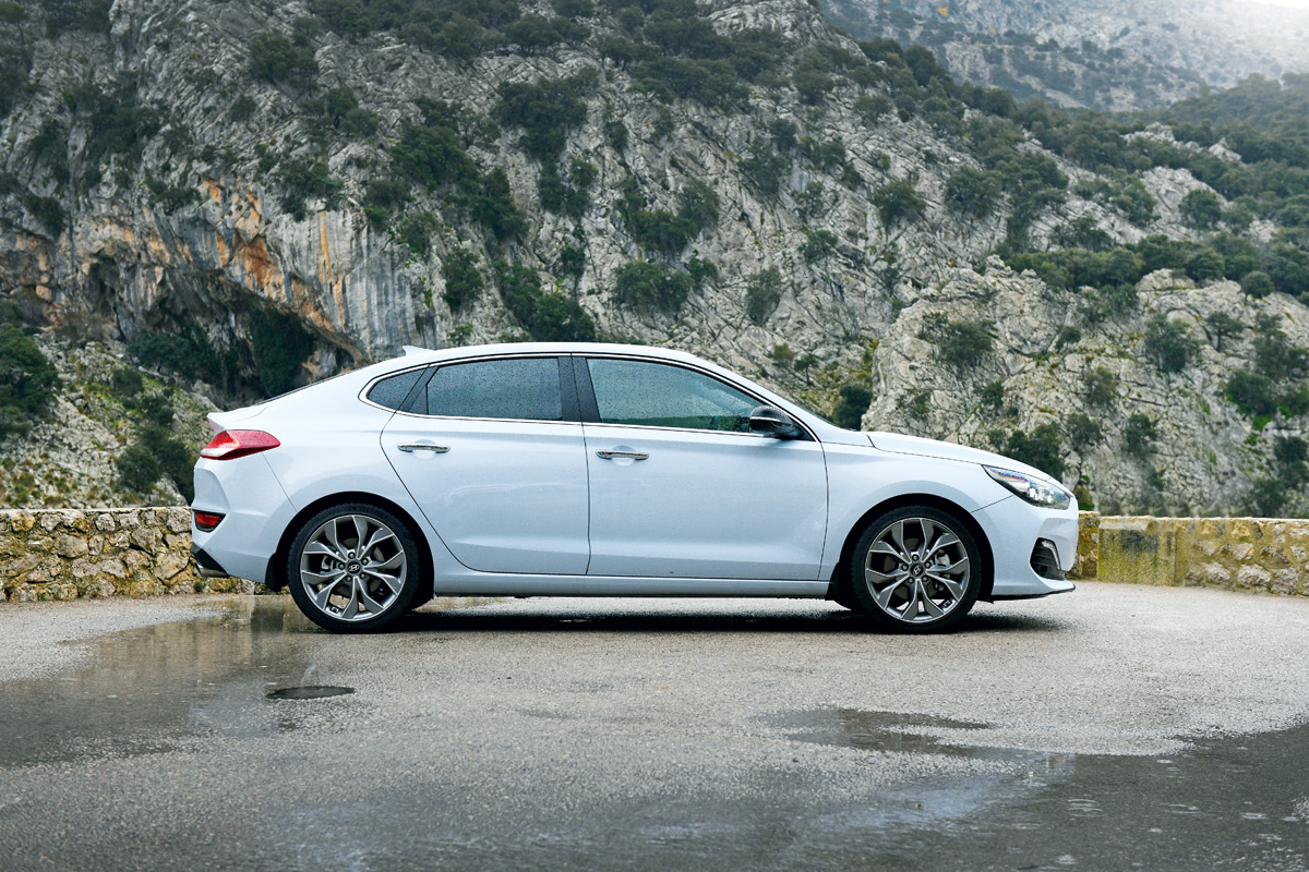Eso sí, el i30 Fastback no solo se singulariza por una zaga matizada por un techo de acusada caída, un semi voladizo trasero y un gran portón bien disimulado, aunque carente de limpia luneta. También lo hace con una longitud que excede en 11,5 centímetros la del i30 5p. Asimismo, es un poco más bajo que aquel (también por la especificidad del chasis), en concreto 3 cm, de modo que marca 1,42 metros.
