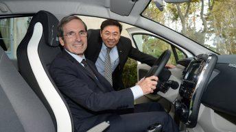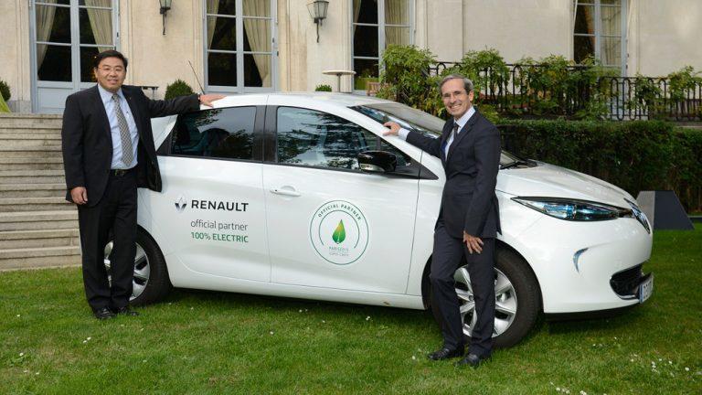 Ricardo Gondo, director general de la marca francesa en España y Portugal, hizo entrega de un Renault ZOE para la Embajada de Francia al diplomático galo, Yves Saint-Geours. Este coche es el vehículo oficial de la Conferencia del Clima de las Naciones Unidas, que se va a celebrar del 30 de noviembre al 11 de diciembre en París. En esta cumbre, Renault y Nissan facilitarán, además, una flota de doscientos vehículos eléctricos, compuesta por los modelos ZOE, Kangoo Z.E., Fluence Z.E., LEAF y e-NV200.