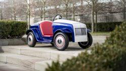 Exterior e interior del Rolls SHR muestran la delicadeza y el detalle habituales en Rolls-Royce: volante bicolor, asiento especial… Logra un máximo de 16 km/h en segundos gracias a un motor eléctrico con una batería de gel de 24 voltios, aunque se puede ajustar a 6,4 km/h.