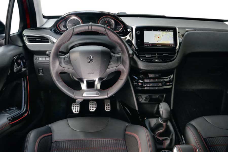 La particular forma de entender el puesto de conducción (Peugeot i-Cockpit) centra la atención al acceder al vehículo. Su diminuto volante, diseñado para ver la instrumentación por encima, resulta un poco raro en los primeros km. Terminas acostumbrándote, pero según tu altura tendrás mejor o peor vista de los relojes. Otro detalle singular es la exagerada palanca del freno de mano, similar a la del Citroën. A diferencia de este, el climatizador está fuera de las funciones de la pantalla central, solución más intuitiva.