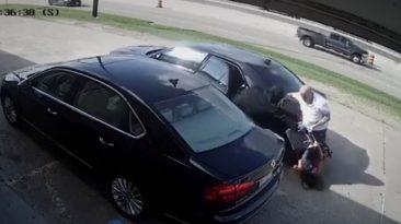 Una de las cámaras de seguridad de una gasolinera captó el momento del brutal robo sucedido en Texas. El atacante aparece de repente de un coche e...