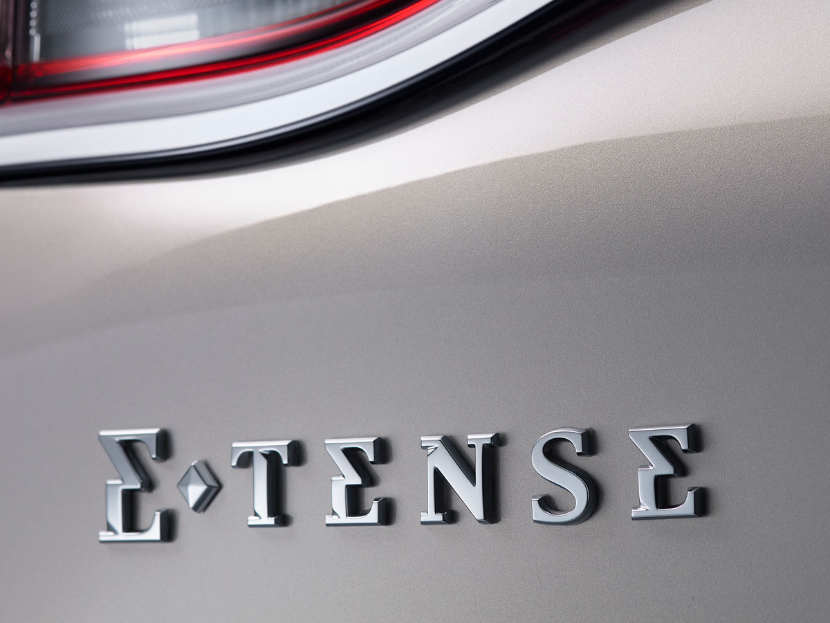 En lo estético, esta versión se distingue por cromados satinados, inclusión de logotipos E-TENSE, paragolpes trasero exclusivo, llantas de aleación de 18” Kyoto y nuevo color de carrocería Crystal Pearl. Además contempla 10 tipos de llantas, 10 colores de carrocería y 3 de techo.