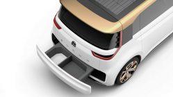 El Volkswagen BUDD-e posee un voluminoso compartimento portaobjetos que sale del paragolpes trasero y también dos cámaras que hacen la función de los retrovisores, proyectando las imágenes que recogen en pantallas curvas del habitáculo. La tecnología al servicio de la automoción queda reflejado en este ejercicio de estilo, que da luz a la tecnología eléctrica del futuro.