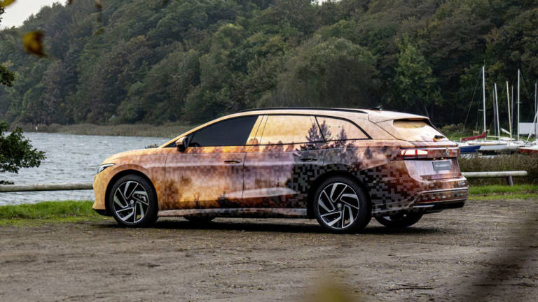 Aunque las primeras imágenes muestran un ID.7 Tourer completamente camuflado y provisto de una pintura dinámica que es capaz de reproducir imágenes (algo que VW ya mostró en el CES de las Vegas de principios de año con el ID.7), no hay que ser excesivamente espabilado para entender que la estética del ID.7 Tourer será muy similar en todos los aspectos al de la berlina. Solo cambia la parte trasera que en lugar de tener una caída pronunciada del techo ofrece la típica silueta de familiar. Además, Volkswagen asegura que su aerodinámica no se verá perjudicada en exceso y anuncia un Cx de 0.24, es decir, un punto más que la berlina. Esto implica que de sumar las mismas opciones de batería que su hermano, la de 77 kWh y 85 kWh, la autonomía final será prácticamente la misma, con un rango máximo cercano a los 700 kilómetros.