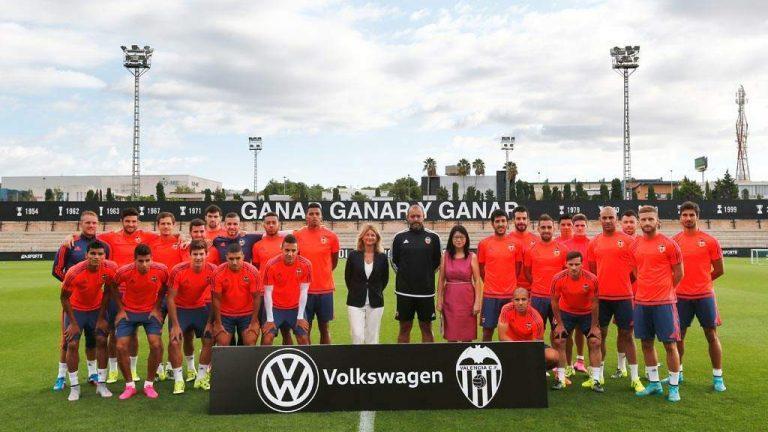 Al igual que sucede con el Atlético de Madrid, esta temporada, Volkswagen patrocina al Valencia C.F y también se convierte en el coche oficial de la entidad. El acuerdo se dio a conocer en un acto celebrado en la Ciudad Deportiva del club levantino, donde estuvieron presentes Laura Ros, directora general de Volkswagen España, y Layhoon Chan, presidenta del conjunto che. Ambas dirigentes saludaron a Nuno Espírito Santo, entrenador portugués del equipo, y a los jugadores de la primera plantilla, entre los que destacan Dani Parejo, Paco Alcácer, José Luis Gayá, Diego Alves y Álvaro Negredo, durante una parada del entrenamiento.