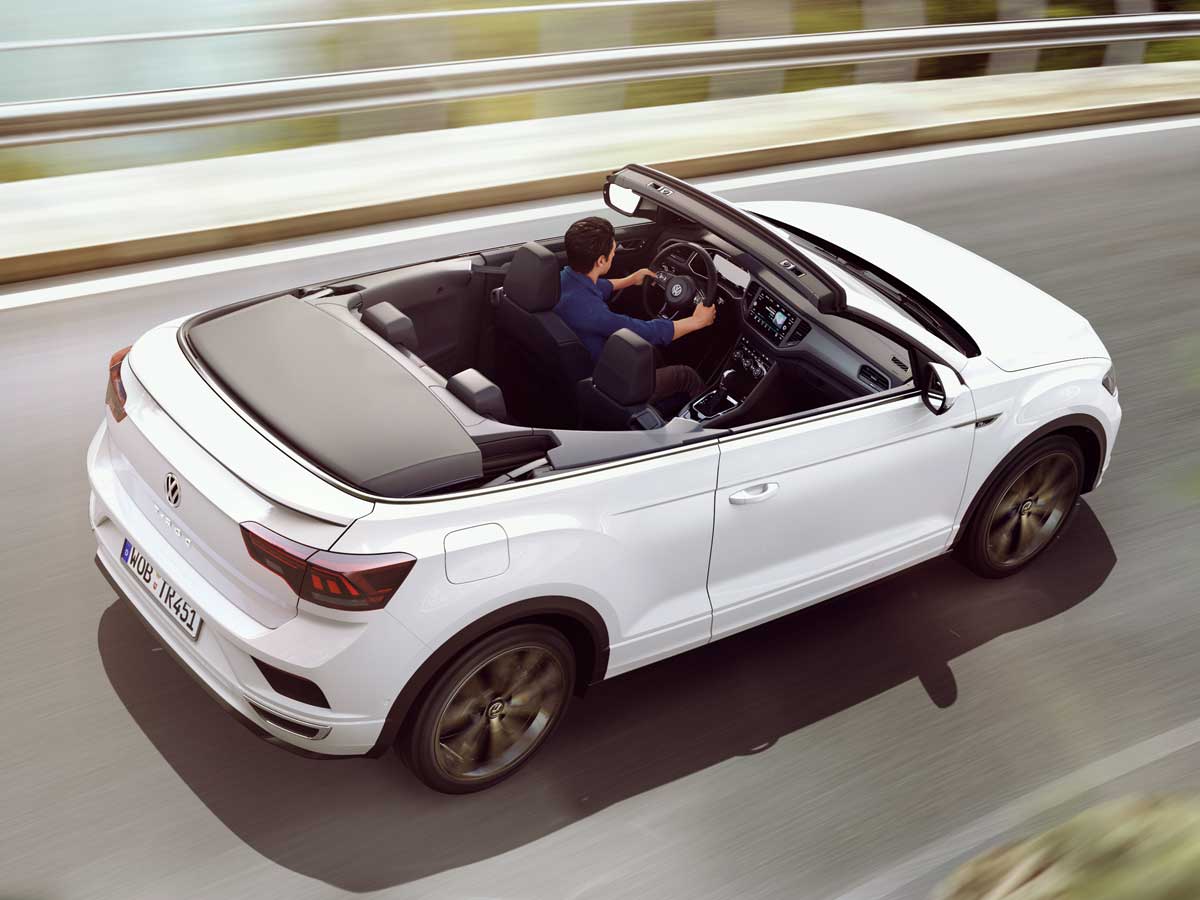 En cuanto a los T-Roc Cabrio R-Line, además de ofrecer una orientación más deportiva con elementos de diseño específicos, suma los faros antiniebla o asientos deportivos con reposacabezas integrados, tapizados en tejido/símil cuero y con apoyo lumbar eléctrico.